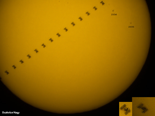 According to the app and my basic calculations, ISS should have gone through sunspot region 2536 and 2535, but ISS entered the disk above 2536 so missed a few frames sadly.